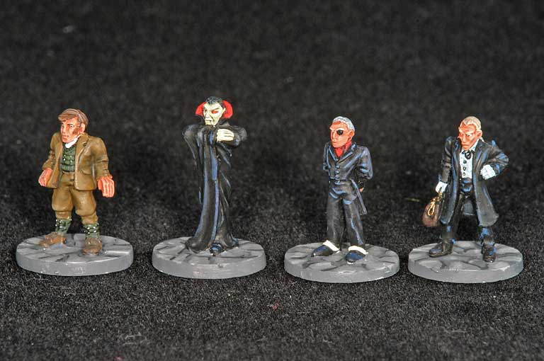 The miniatures were 20mm representations of Dracula and the player characters. Dr Seward, Dracula, Lord Godalming and Van Helsing.