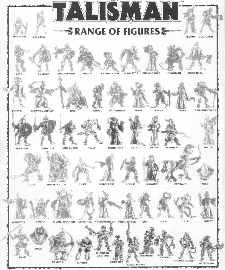 Talisman Timescape Miniatures Sheet (Pictures of all standard Talisman Miniatures from the Timescape Box) ) Large (98k)!