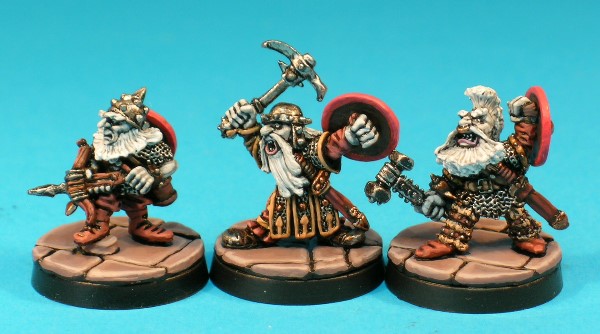These figures represent Duergar, evil dark-dwarves who haunt the endless tunnels of the Underdark. They were sold in packs of 3 miniatures which included a crossbowman, a Duergar armed with a military pick, and one wielding a warhammer. There are 5 variants of each pose, with the only differences being in head position and facial features.